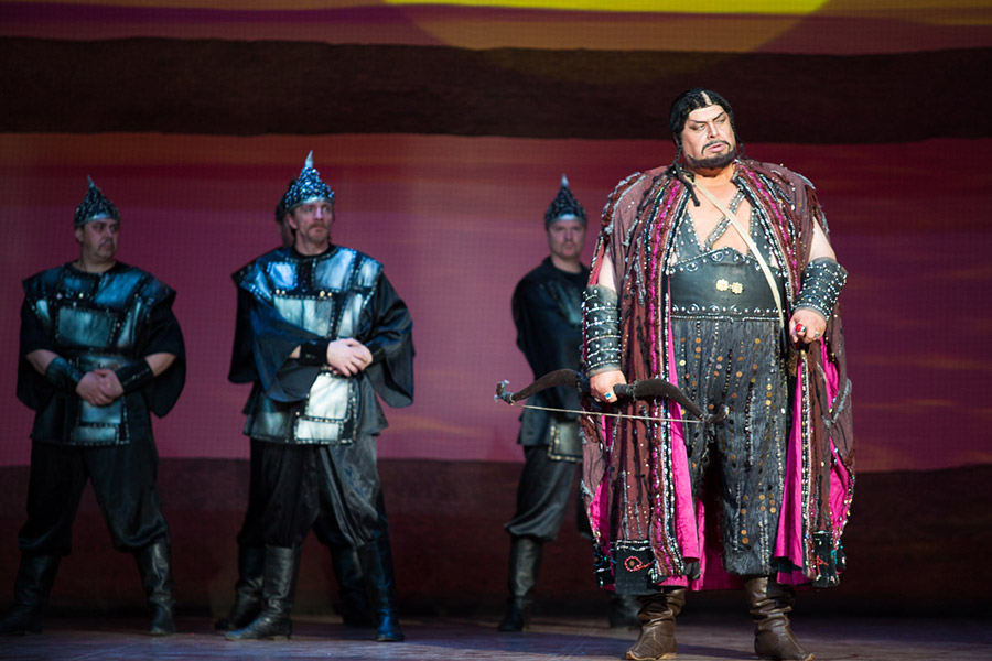 Honored Artist of the Republic of Belarus, bassist Oleg Melnikov in the role of Konchak, a Polovets hagan